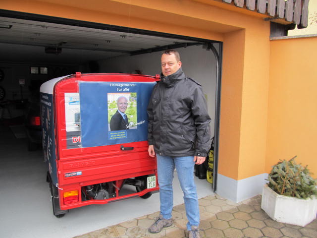 Mit dem "italienischen Bienchen"- einem roten motorisierten Dreirad- startet die SPD in Weichendorf den Kommunalwahlkampf.