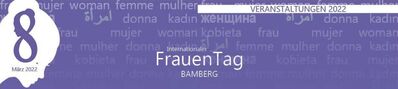 auch dieses Jahr gibt es ein buntes Programm mit Veranstaltungen, Aktionen, Workshops und Vorträgen rund um den Internationalen Frauentag am 8. März in Bamberg. Wir danken an dieser Stelle allen, die den Internationalen Frauentag 2022 mitgestalten!