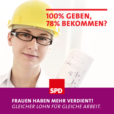 100 Prozent Leistung bringt 78 Prozent Lohn. Gerecht? Nö. Vielen Frauen geht es aber so. Sogar, wenn sie in einem Unternehmen denselben Job machen wie Männer bekommen sie oft weniger. Auch heute, am Internationalen Frauentag, sollten wir darüber reden – und das Entgeltgleichheitsgesetz erwähnen, das wir nach der Wahl auf den Weg bringen. Dabei geht es darum, dass Lohndiskriminierung in Unternehmen sichtbar und anschließend beendet wird. Damit die Knete stimmt.