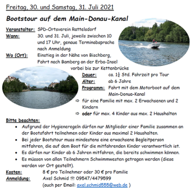 Aufgrund der Kontaktbeschränkungen konnte das beliebte Familienfest zwar nicht wie gewohnt durchgeführt werden, jedoch ließ sich die SPD Rattelsdorf auch in dieser schwierigen Zeit attraktive Alternativen für die Bürger*innen einfallen. So kamen das Familienquiz im Sommer 2020 und die Radl-Rallye im Sommer 2021 gut an. Viele Familien bearbeiteten die Quizbögen und erhielten eine Teilnahme-Belohnung dafür. Für besonders viel Zuspruch sorgte die Osteraktion in diesem Jahr. Viele Bilder und Bastelarbeiten erreichten über den SPD-Ortsverein den Osterhasen, der jedes Werk mit einem kleinen Osternest belohnte. Auch am gemeindlichen Ferienprogramm beteiligte sich der SPD-Ortsverein mit einer Bootstour auf dem Main. Neben diesen Veranstaltungen wurden auch mehrere politische Dämmerschoppen durchgeführt, sofern coronabedingt möglich.