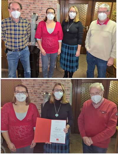 Coronabedingt konnten Ehrungen im Jahr 2020 nicht vorgenommen werden. Dies wurde in der diesjährigen Mitgliederversammlung nachgeholt bzw. bei den zu Ehrenden, die nicht anwesend sein konnten, bei Besuchen im privaten Bereich vorgenommen.