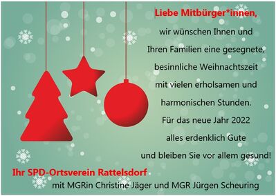 Am Samstag, dem 13. November 2021 trafen sich die Mitglieder des SPD-Ortsvereins Rattelsdorf zur Jahreshauptversammlung im Vereinslokal Rothlauf. Im Rechenschaftsbericht blickte 1. Vorsitzende Christine Jäger, die zuvor von Alt-Bürgermeister Gerhard Jäger für 25 Jahre Mitgliedschaft geehrt worden war, auf die Ortsvereins-Arbeit der letzten beiden Jahre zurück.