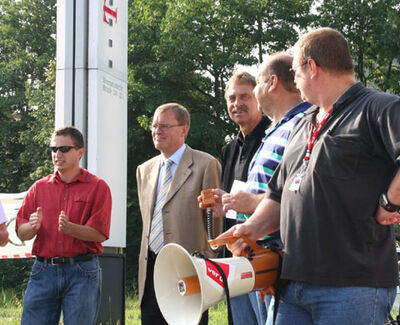 [14.06.2007] Oberbürgermeister Andreas Starke unterstützt die Telekom-Beschäftigten in ihrem Kampf um den Erhalt ihrer qualifizierten und angemessen bezahlten Arbeitsplätze. Am frühen Donnerstag morgen (14.06) besuchte er nach einer Streik-Nachtwache die Beschäftigten. Starke sagte wörtlich zu den Telekommitarbeitern, die sich vor dem Tor des Betriebsgeländes in der Memmelsdorfer Straße versammelt hatten: „Ich stehe auf der Seite der Telekombeschäftigten und unterstütze deren legitimen Protest.“