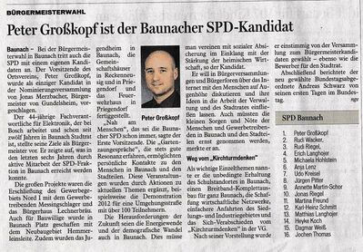 In dieser Aufstellungsversammlung werden der Bürgermeisterkandidat und die Stadtratskandidaten für die am 16. März 2014 stattfindende Kommunalwahl nominiert.