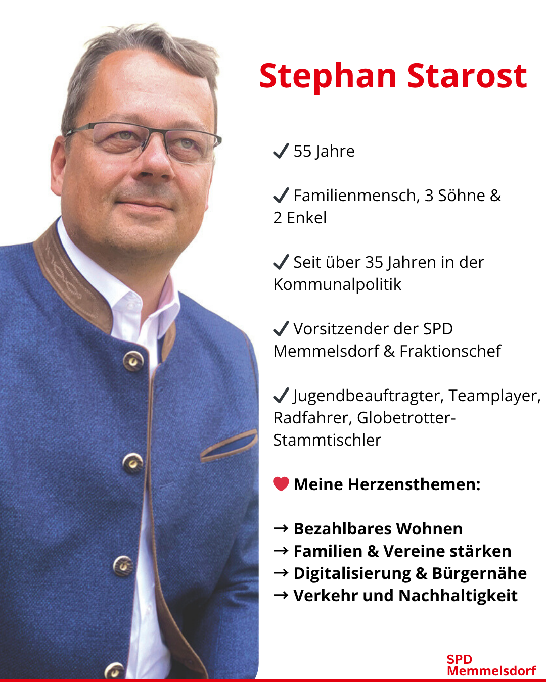 Mit einem engagierten Team und einer klaren Vision ist Stephan Starost und die gesamte SPD Memmelsdorf bereit, die Herausforderungen der kommenden Jahre anzugehen und die Gemeinde Memmelsdorf in eine erfolgreiche Zukunft zu führen.